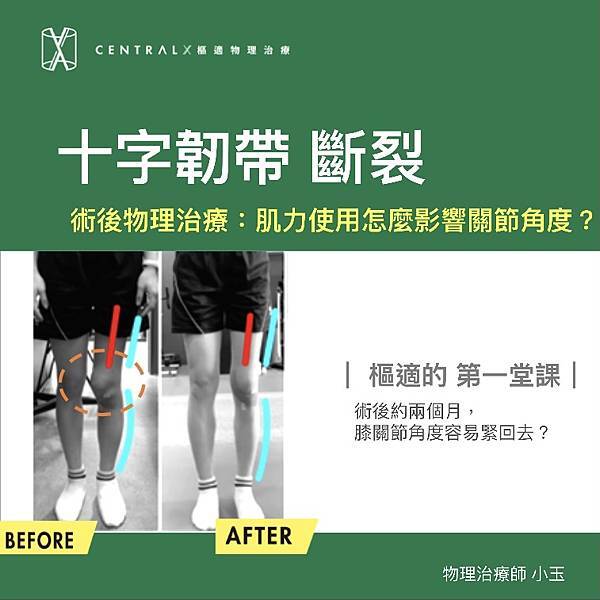 一開始在測試時發現除了膝關節活動角度問題,還有髕骨活動度卡住問題:先透過個案練習主動回正髕骨,再輔以適合的肌力訓練動作,膝關節疼痛下降、活動度增加也更容易維持。